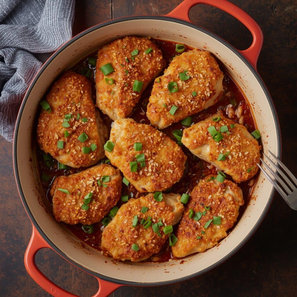 Second, it’s incredibly quick and easy to throw together. Ideal for busy weeknights when you crave something satisfying, yet don’t have hours to spend in the kitchen. The flavor? Unbeatable! The crispy coating seals in the juicy chicken, delivering a burst of flavor in every bite.