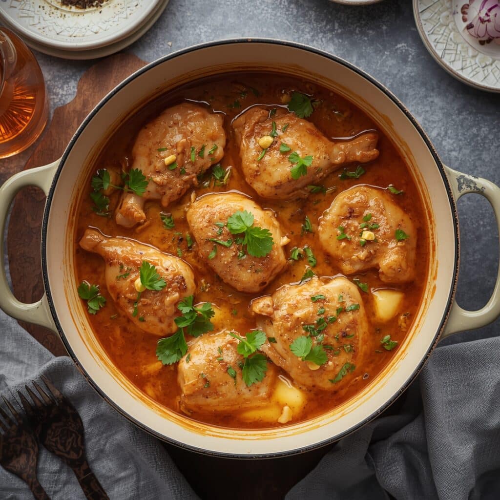 Tender chicken pieces seared to golden perfection and smothered in a rich, garlicky butter sauce.