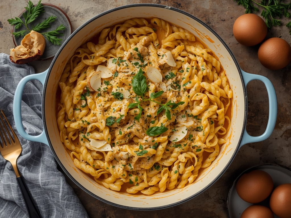 • Chicken one pot creamy garlic pasta: Add pre-cooked shredded chicken to the pasta during the last few minutes of cooking.