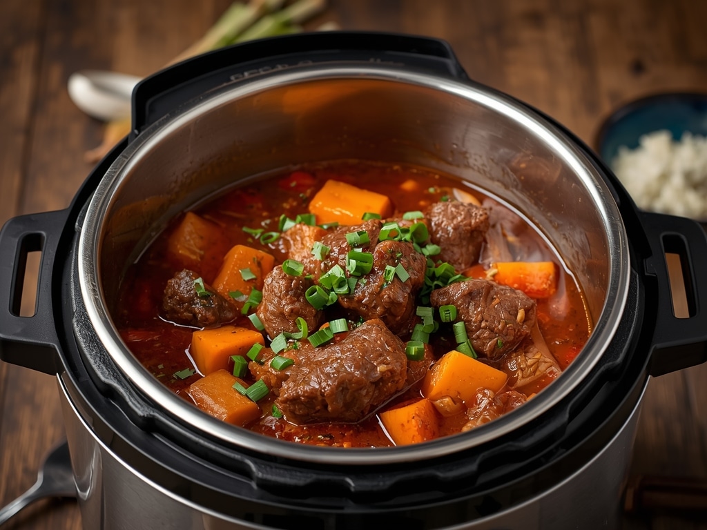 - 9. Thicken (Optional): If you prefer a thicker stew, whisk together cornstarch and water in a small bowl. Stir the slurry into the stew and let it simmer on the “Sauté” function for a few minutes until thickened.